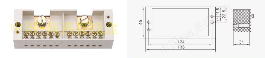 英文名稱:Single-phase two-inlet tweleve-meter-outlet terminal block