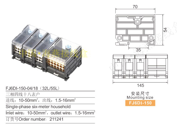 FJ6DI-150-04/18(32L/55L)導軌式組合接線端子(三相四線)