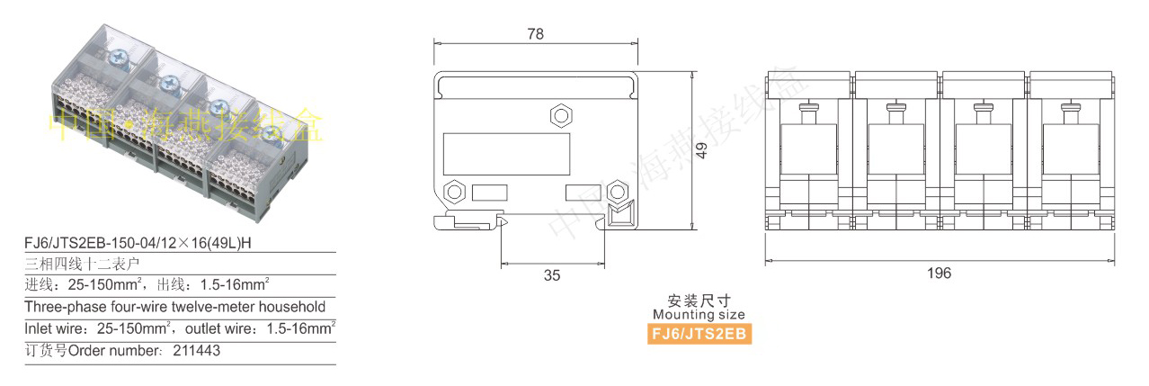 FJ6/JTS2EB-150-04/12×16(49L)H多用途端子(三相四線)