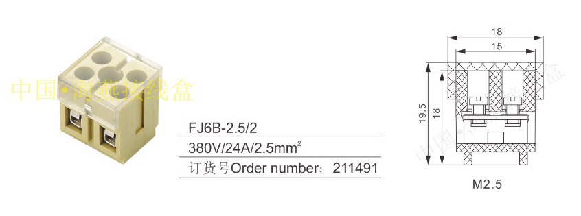 FJ6B-2.5/2底座封閉型接線端子排
