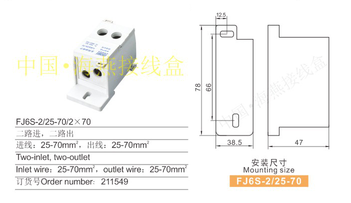 FJ6S-2/25-70/2×70多用途接線端子(二進(jìn)多出)
