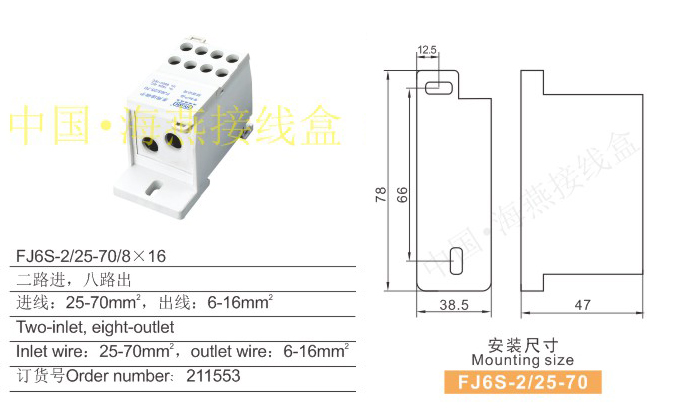FJ6S-2/25-70/8×16多用途接線端子(二進多出)