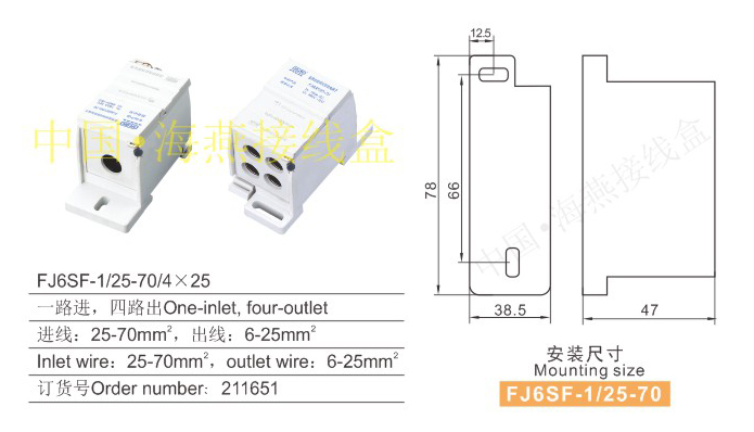 FJ6SF-1/25-70/4×25多用途封閉式防竊電接線端子(一進多出)