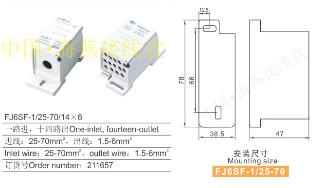 FJ6SF-1/25-70/14×6多用途封閉式防竊電接線端子(一進(jìn)多出)