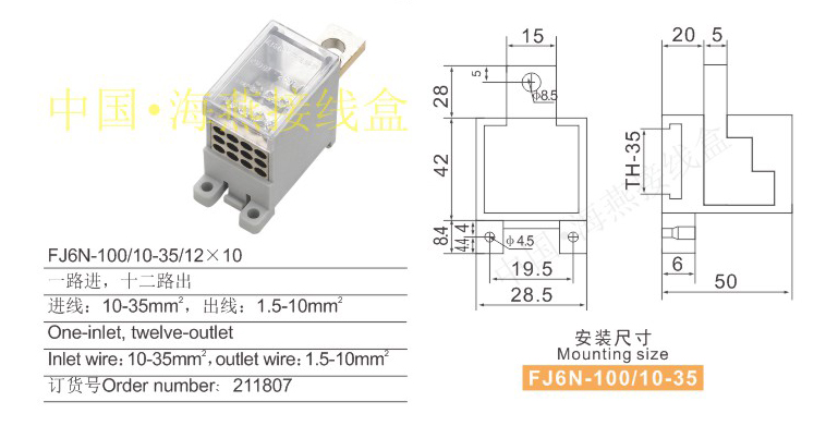 FJ6N-100/10-35/12×10零線端子(配斷路器組合)