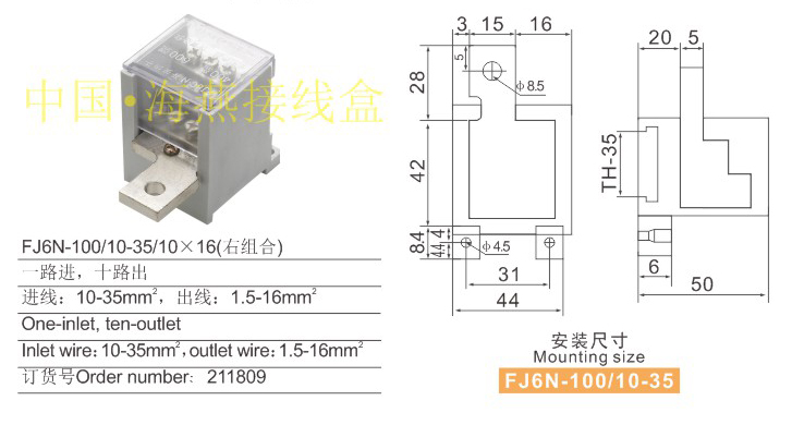 產(chǎn)品分類:FJ6N-100/10-35系列零線端子250