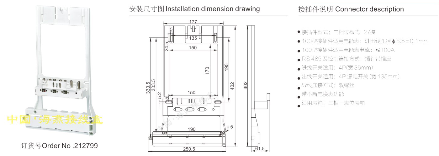 FJ6/S1-100/GY-27三掃過盈式電能表接插件(一體式)